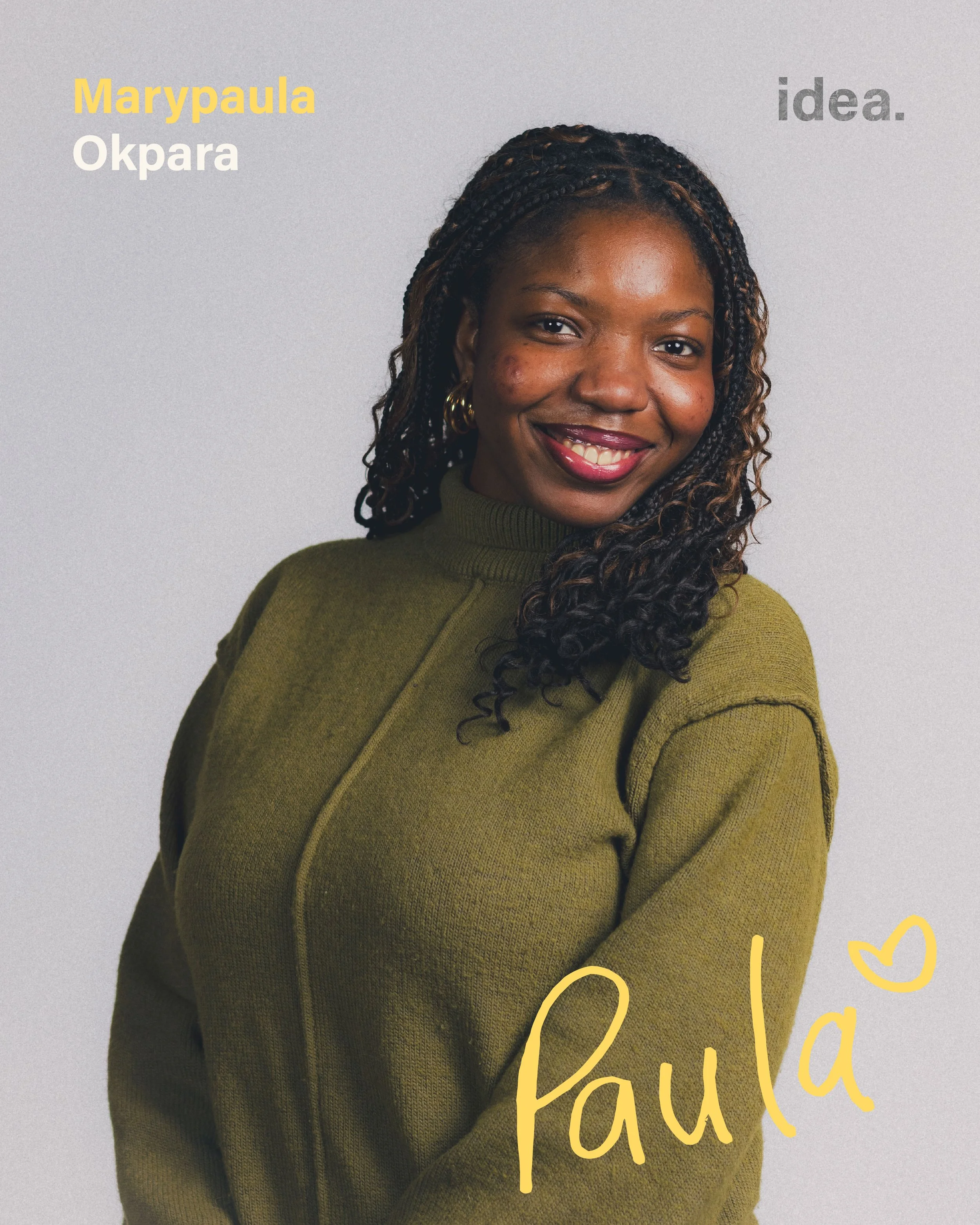 Hello! My name is Marypaula Okpara. I am a Nigerian designer focused on UI/UX design and culturally responsive information design. I enjoy creating accessible and minimalist user experiences that guides users through clear processes. My information design work is rooted in equity-centred and inclusive design, aiming to challenge systemic barriers while celebrating colour, culture, and representation. Through thoughtful research and design, I strive to create engaging and accessible visual communication that reflects and serves diverse communities.